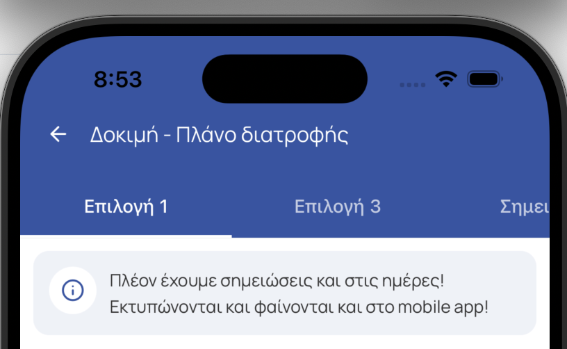 Θα ήταν χρήσιμο να μπορούσαμε να γράφουμε κάποια σημείωση στον πίνακα του διαιτολογίου κάτω από τις ημέρες πχ